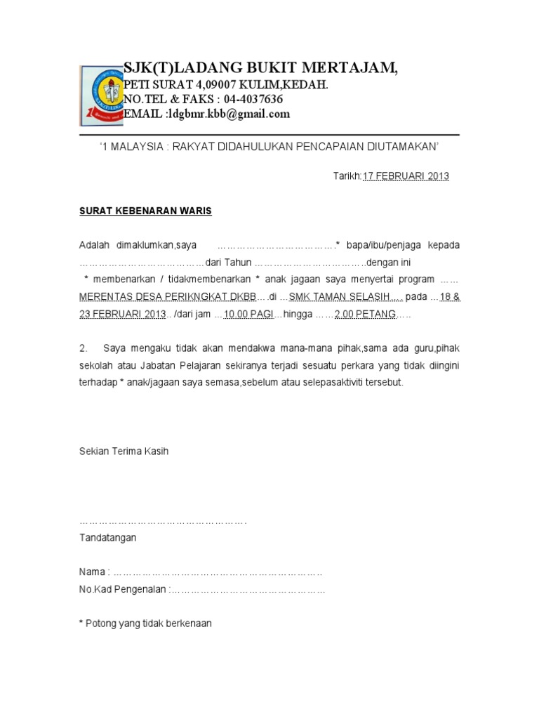 Anda mungkin perlu mempelajari teknik yang berbeza untuk menulis surat dalam ini era digital di mana mesej teks dan e-mel telah. SURAT AKUAN KEBENARAN WARIS MENYERTAI AKTIVITI LAWATAN Saya. Surat makluman aktiviti kepada ibu bapa pdf.
